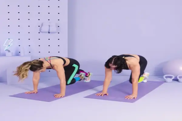 Slik gjør du: Start i en plankeposisjon. Hold hoftene i vater mens du kjører høyre kne mot brystet, gå tilbake til en planke og gjenta raskt med venstre kne. Det er en rep. Fullfør 15.