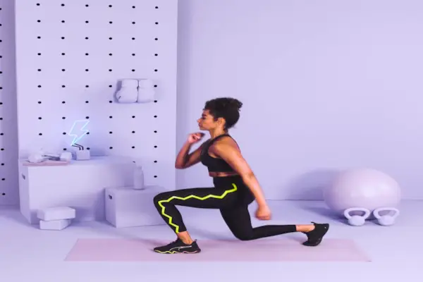 Slik gjør du: Start i et utfall med høyre ben frem og venstre ben bak, begge bøyd i 90 grader. Slapp av høyre arm rett på siden og bøy venstre arm slik at hånden er på linje med haken. Hopp raskt opp fra gulvet, bytt ben i luften for å lande i et utfall med venstre ben fremover og armene i motsatte posisjoner. Det er en rep.